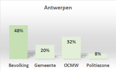 In Antwerpen is dat 1 op 1,5 bij het OCMW-personeel, in het Vlaamse gewest