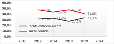 | Linkse coalitie | 47,6% | 43,6% | 47,6% | 41,0% | ||||||||||||||||||||||||||||||||||||||||||||||||||||||||||||||||||||||||||||||||||