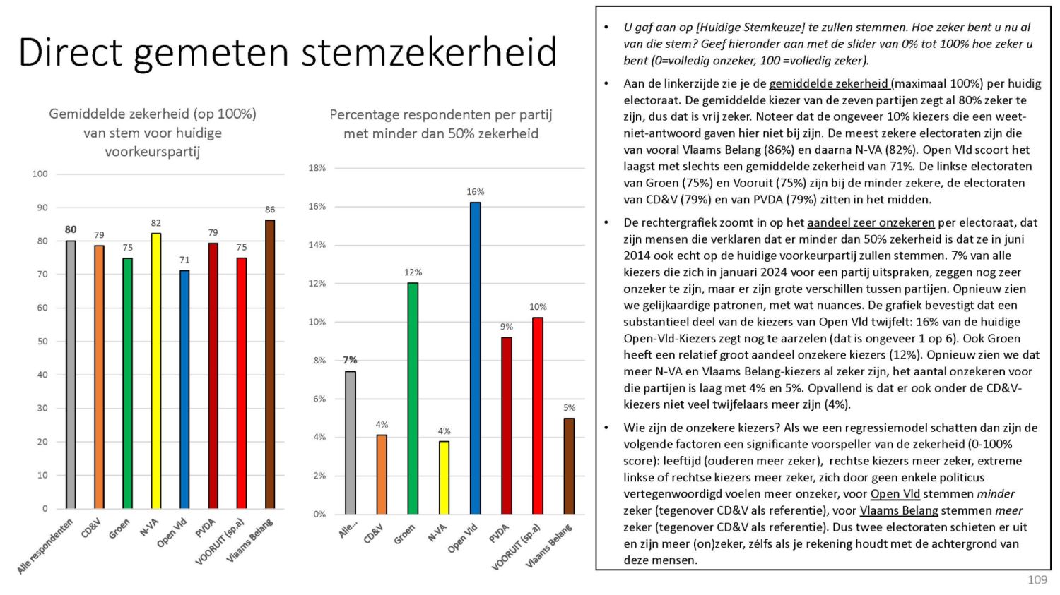 zeker zijn, en van wie onzeker is. Dit laatste % wordt per partij vermeld in kolom