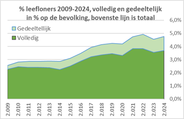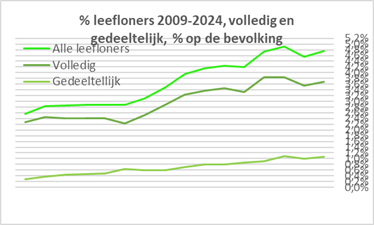 | Bevolking, erkende vluchtelingen 1999-2024, erk. vlucht. mét leefloon 2024, /1000, totaal, % gewest en vergelijking | ||||||||||||||||||||