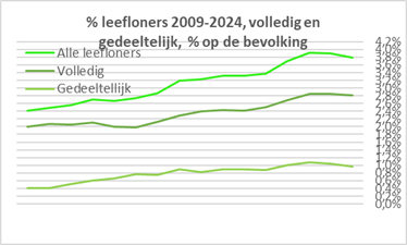 | Bevolking, erkende vluchtelingen 1999-2024, erk. vlucht. mét leefloon 2024, /1000, totaal, % gewest en vergelijking | ||||||||||||||||||||