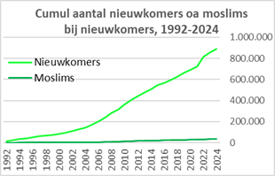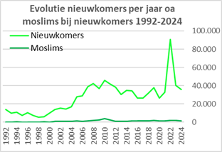 Evolutie nieuwkomers per decen. en 33 jaar |