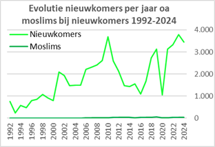 Evolutie nieuwkomers per decen. en 33 jaar |