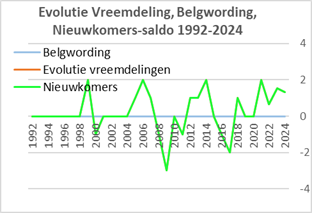Evolutie vreemdelingen per decennium en 33 jaar |