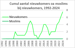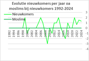 Evolutie nieuwkomers per decen. en 33 jaar |