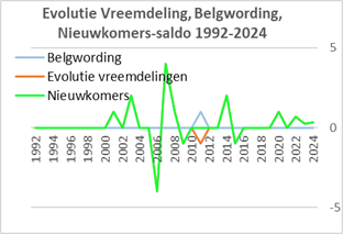 Evolutie vreemdelingen per decennium en 33 jaar |