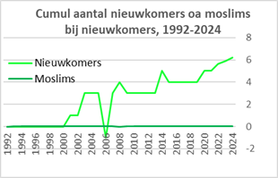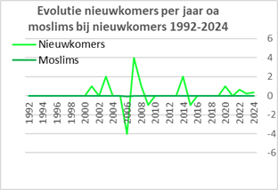 Evolutie nieuwkomers per decen. en 33 jaar |