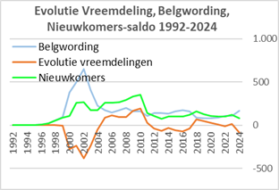 Evolutie vreemdelingen per decennium en 33 jaar |