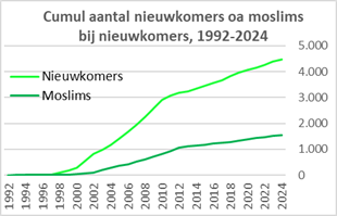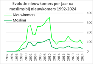 Evolutie nieuwkomers per decen. en 33 jaar |