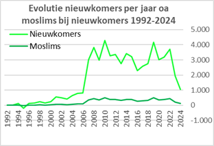 Evolutie nieuwkomers per decen. en 33 jaar |