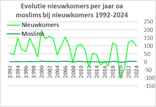Evolutie nieuwkomers per decen. en 33 jaar |