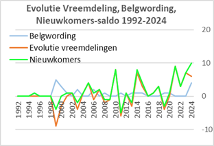 Evolutie vreemdelingen per decennium en 33 jaar |