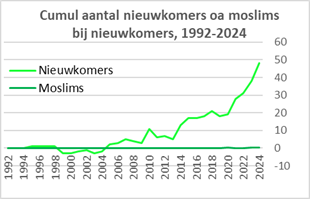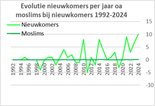 Evolutie nieuwkomers per decen. en 33 jaar |