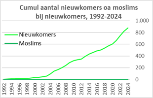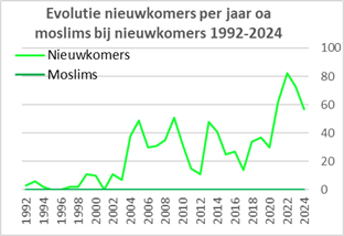 Evolutie nieuwkomers per decen. en 33 jaar |
