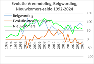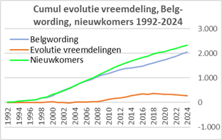 Evolutie vreemdelingen per decennium en 33 jaar |