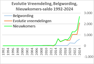 Evolutie vreemdelingen per decennium en 33 jaar |