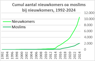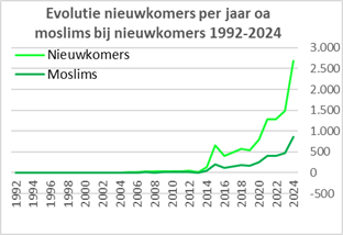 Evolutie nieuwkomers per decen. en 33 jaar |