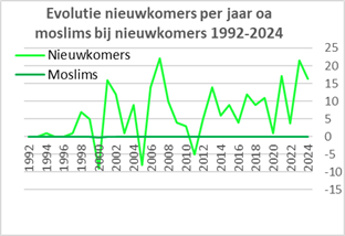 Evolutie nieuwkomers per decen. en 33 jaar |