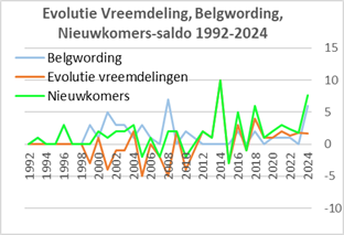 Evolutie vreemdelingen per decennium en 33 jaar |