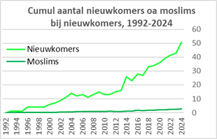 Evolutie nieuwkomers per decen. en 33 jaar |