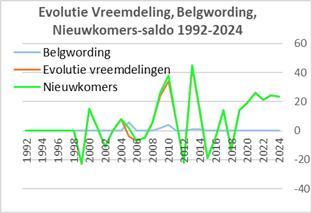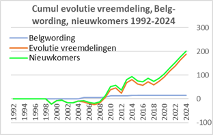 Evolutie vreemdelingen per decennium en 33 jaar |