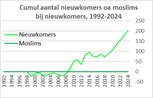 Evolutie nieuwkomers per decen. en 33 jaar |