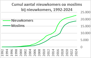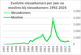 Evolutie nieuwkomers per decen. en 33 jaar |