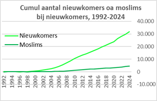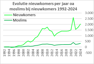 Evolutie nieuwkomers per decen. en 33 jaar |