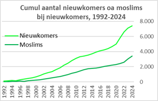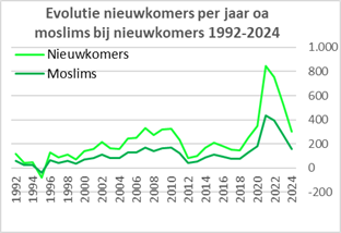 Evolutie nieuwkomers per decen. en 33 jaar |