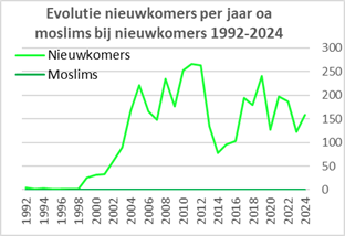 Evolutie nieuwkomers per decen. en 33 jaar |