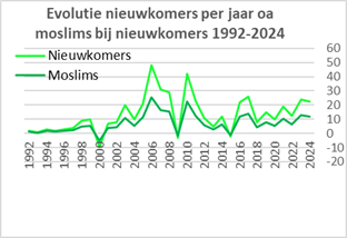 % nieuwkomers op de bevolking |
