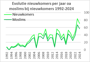 Evolutie nieuwkomers per decen. en 33 jaar |