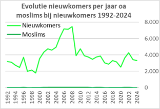 Evolutie nieuwkomers per decen. en 33 jaar |
