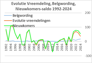 Evolutie vreemdelingen per decennium en 33 jaar |