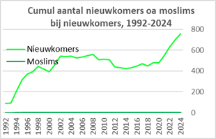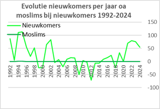 Evolutie nieuwkomers per decen. en 33 jaar |