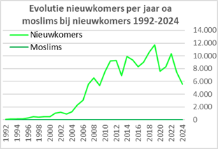 Evolutie nieuwkomers per decen. en 33 jaar |
