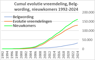 Evolutie vreemdelingen per decennium en 33 jaar |