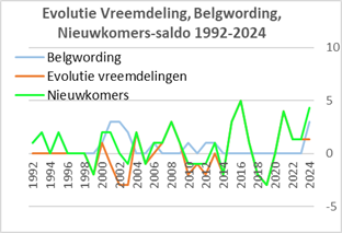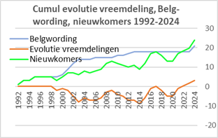 Evolutie vreemdelingen per decennium en 33 jaar |