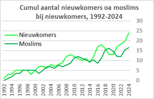 Evolutie nieuwkomers per decen. en 33 jaar |