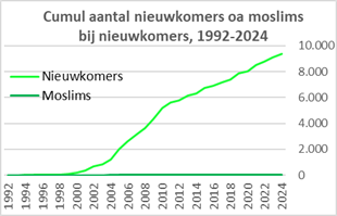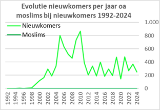 Evolutie nieuwkomers per decen. en 33 jaar |