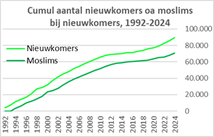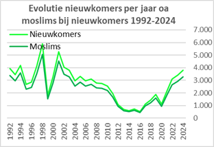 Evolutie nieuwkomers per decen. en 33 jaar |