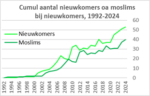 Evolutie nieuwkomers per decen. en 33 jaar |