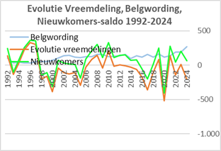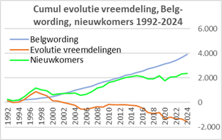 Evolutie vreemdelingen per decennium en 33 jaar |