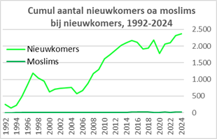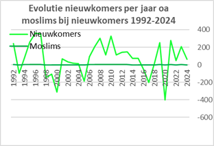 Evolutie nieuwkomers per decen. en 33 jaar |
