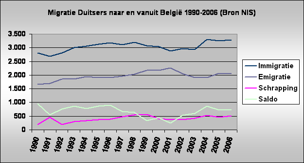 Migratie Duitsers naar en vanuit België 1990-2006 (Bron NIS)